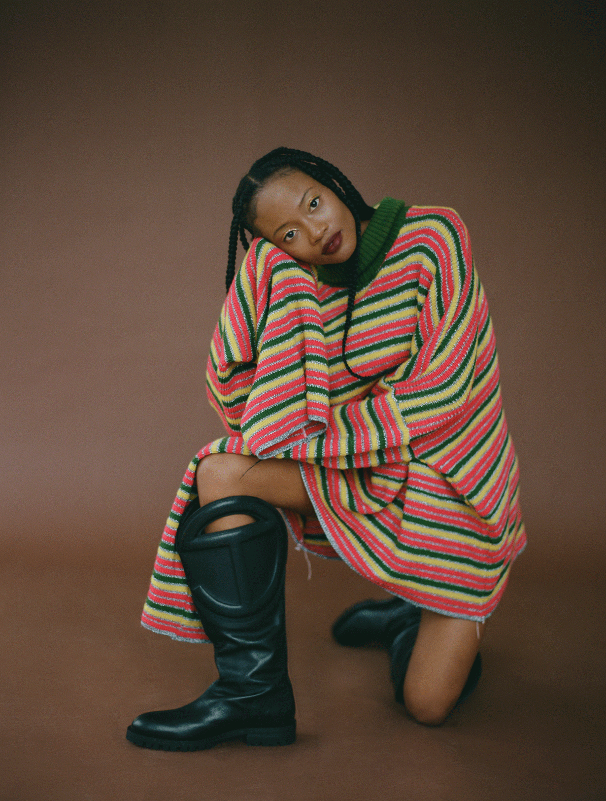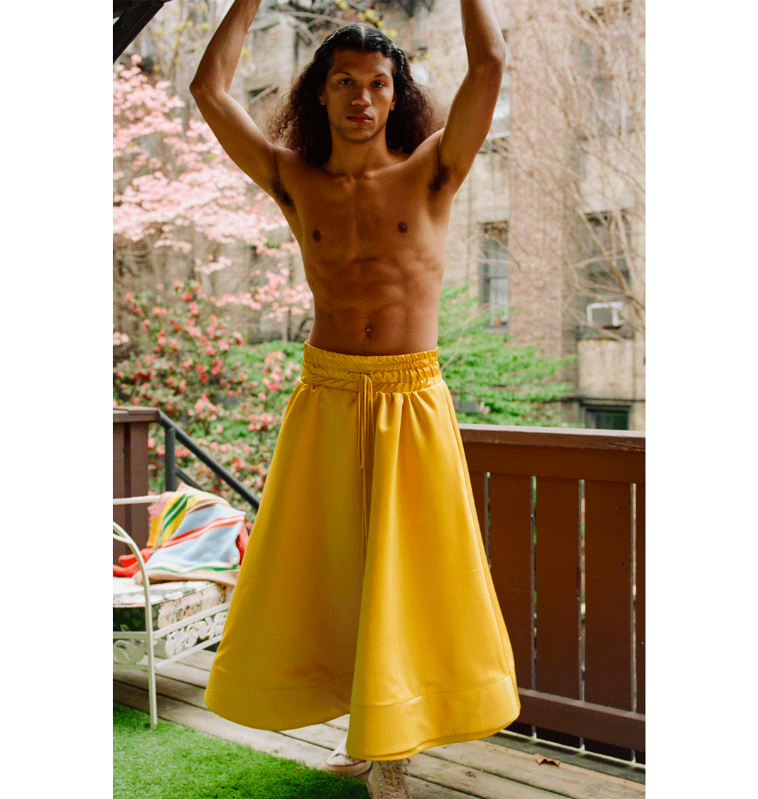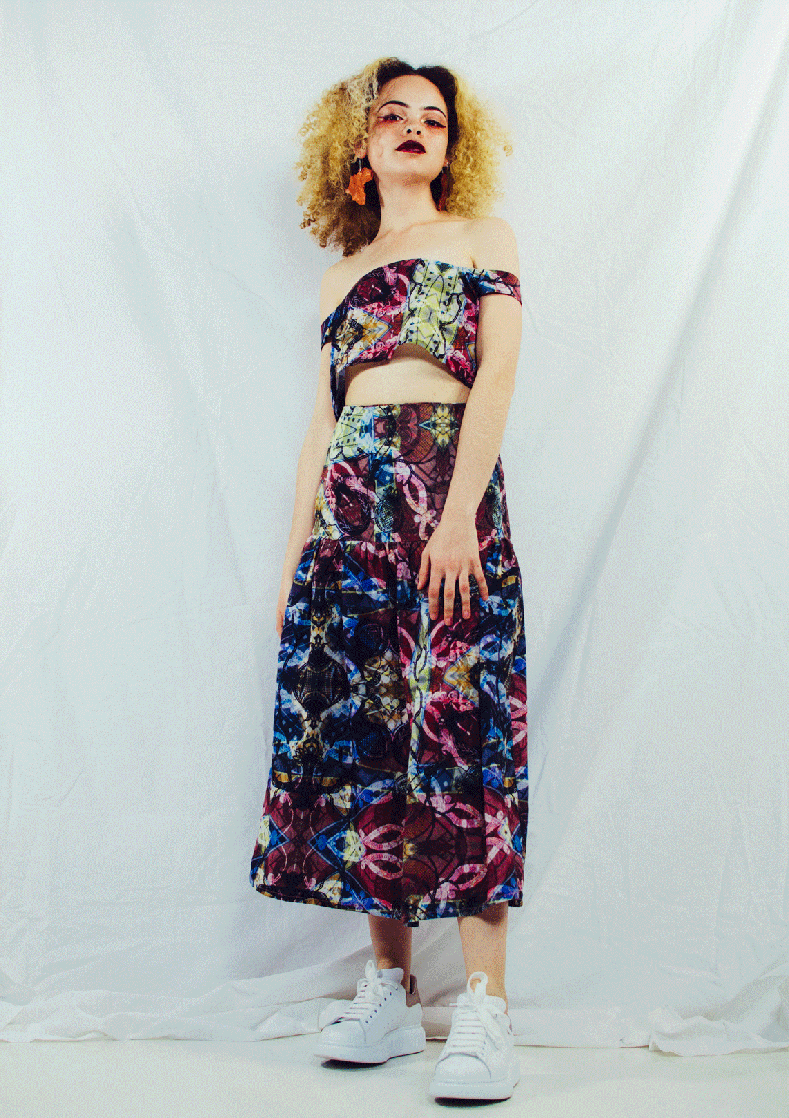 This collection is derived from the women who raised me while I was in Togo. Reflecting on lived experiences and looking through old family photos, I draw inspiration from the ways my aunts and cousins dressed. I was able to recreate some of the silhouettes that were unique to West African culture, but nuanced with western influences while simultaneously fabricating contemporary textiles. This brings forth my intention of creating a modern African identity, one full of intent and awareness of the world. I also look at the dress practices of Togo and other parts of west Africa and use it as a source of influence to how I confront masculinity through my work.