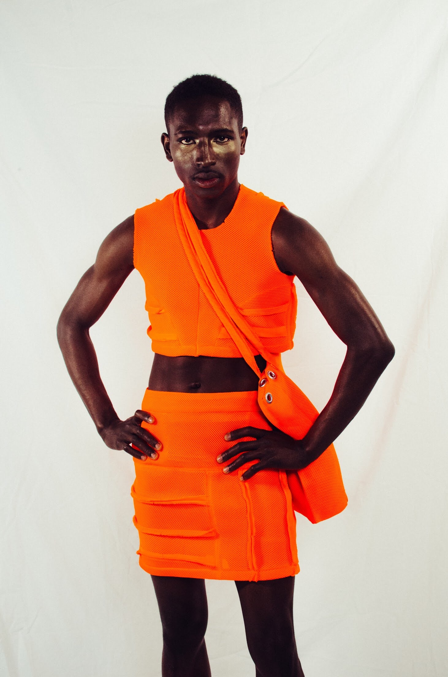 Growing up in Chicago and witnessing family members being incarcerated throughout my childhood, I wanted to reclaim the color as something that popped on Black skin and this collection highlighted the color orange in a more optimistic view.